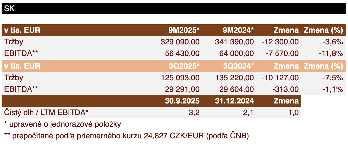 „Negatívny trend prepadu tržieb v ČeskoSlovensku sa nám podarilo offsetovať nákladovými úsporami. EBITDA za tretí štvrťrok je teda porovnateľná s výsledkami rovnakého obdobia roku 2024,” sumarizuje Martin Pisklák, finančný riaditeľ skupiny Kofola a dodáva: „Na prelome augusta a septembra sa trend tržieb pozitívne obracal, preto sme publikovali výhľad celkového výsledku za rok 2025 na úrovni 1,9 mld. Kč. Ale jeseň a novembrové tržby ukazujú, že negatívny trend, bohužiaľ, trvá. Preto musíme revidovať celkový výhľad na úroveň 1,75 mld. Kč,” uzatvára Martin Pisklák s tým, že z pohľadu finančnej stability sa pre skupinu Kofola nič nemení.